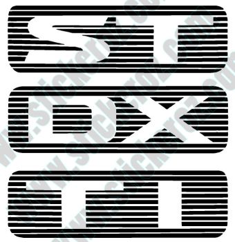 Supplied as a pair in one of the style (please choose one, ST, DX, or TI) each sticker is 167mm x 51mm. We're now able to customise these stickers with other letters if you're looking for something custom. Any standard colour $9.00 including
