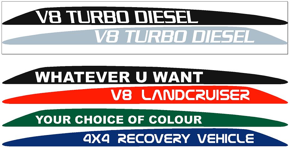 Toyota V8 Landcruiser bonnet stickers These were made to fit a V8 Diesel Landcruiser